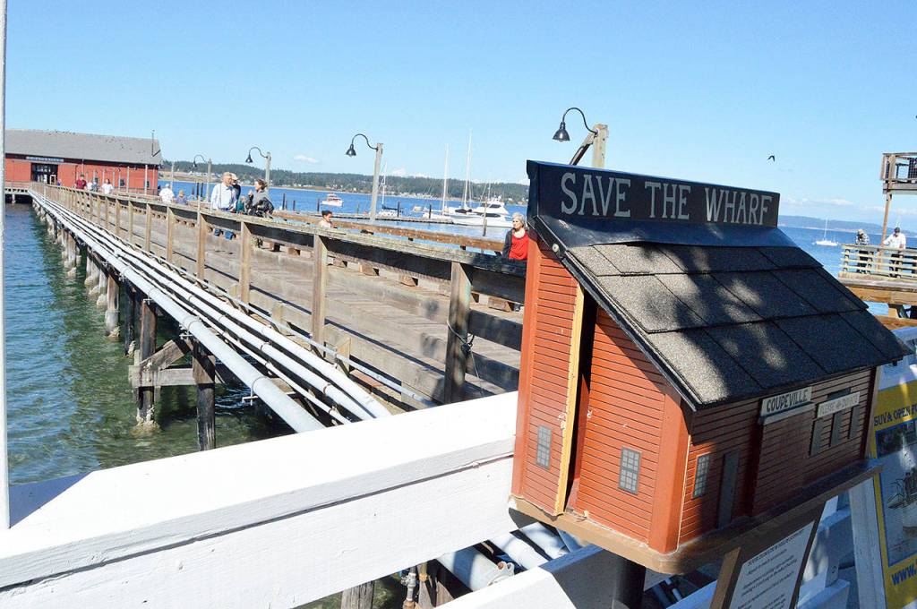 A mini Coupeville Wharf collection box to raise funds for projects at the historic public structure was kicked in any money inside stolen in early August. Photo by Megan Hansen/Whidbey News-Times