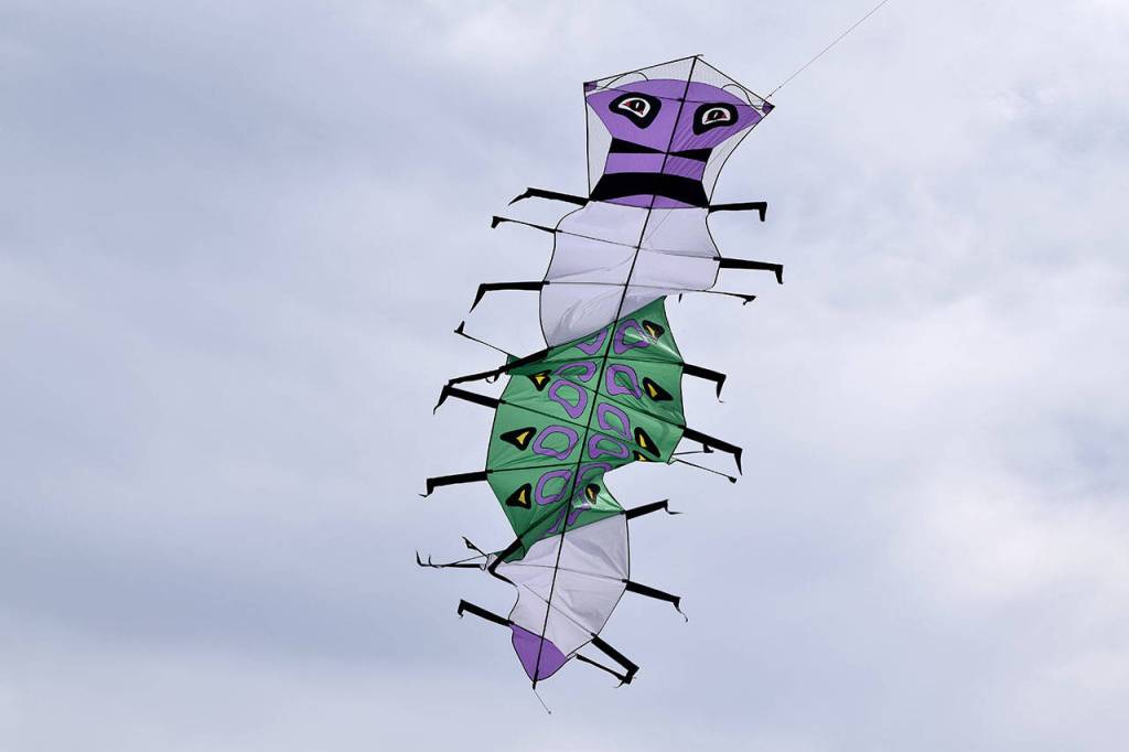 But for the Whidbey Island Kite Fliers, this isn’t a once-a-year sight. They fly their kites as a group every month, both to practice coordinated team flying and to test their newest hand-made creations.