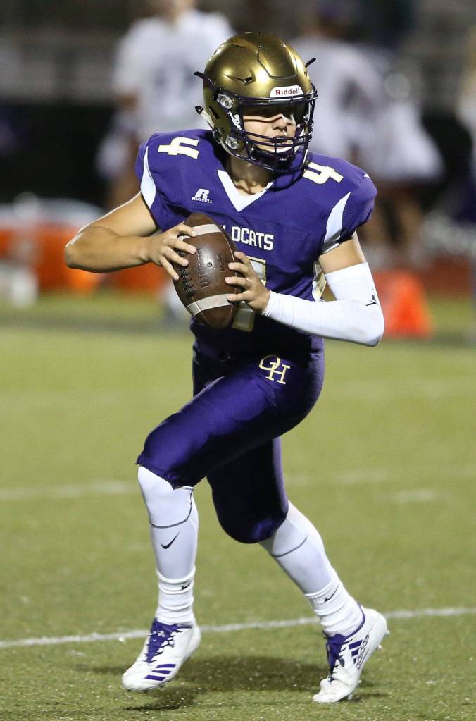 The Wildcats’ next home game is Friday, Sept. 29, against defending champion Squalicum. The Storm (2-0) — and this is not a typo — defeated South Delta, B.C., 85-70 last night. The teams combined for 1,567 yards of offense, with Squalicum’s Triston Smith rushing for 445 yards and six touchdowns and quarterback Spencer Lloyd recording 382 yards of total offense. South Delta QB Michael Calvert threw for 654 yards and seven touchdowns.