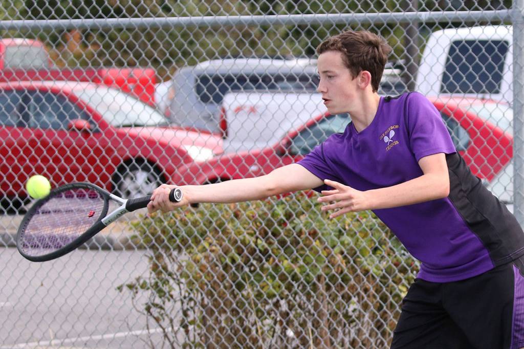 Nathanael Thompson was leading 4-1 in the first set of first singles when his opponent retired because of an injury. Ryan Mene took fourth singles 7-5, 6-3.