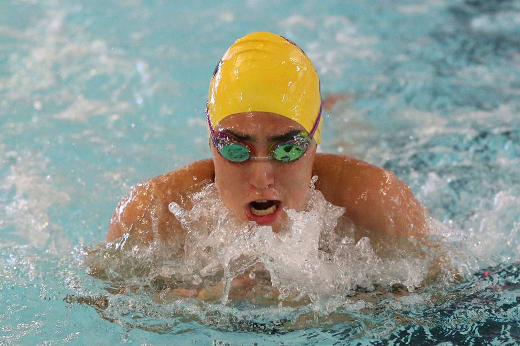 Grace Chargualaf, Caitlin Dennen, Baelee Whitinger and Naomi Garcia captured Oak Harbor’s other first place, the 400 free relay (5:01.34).