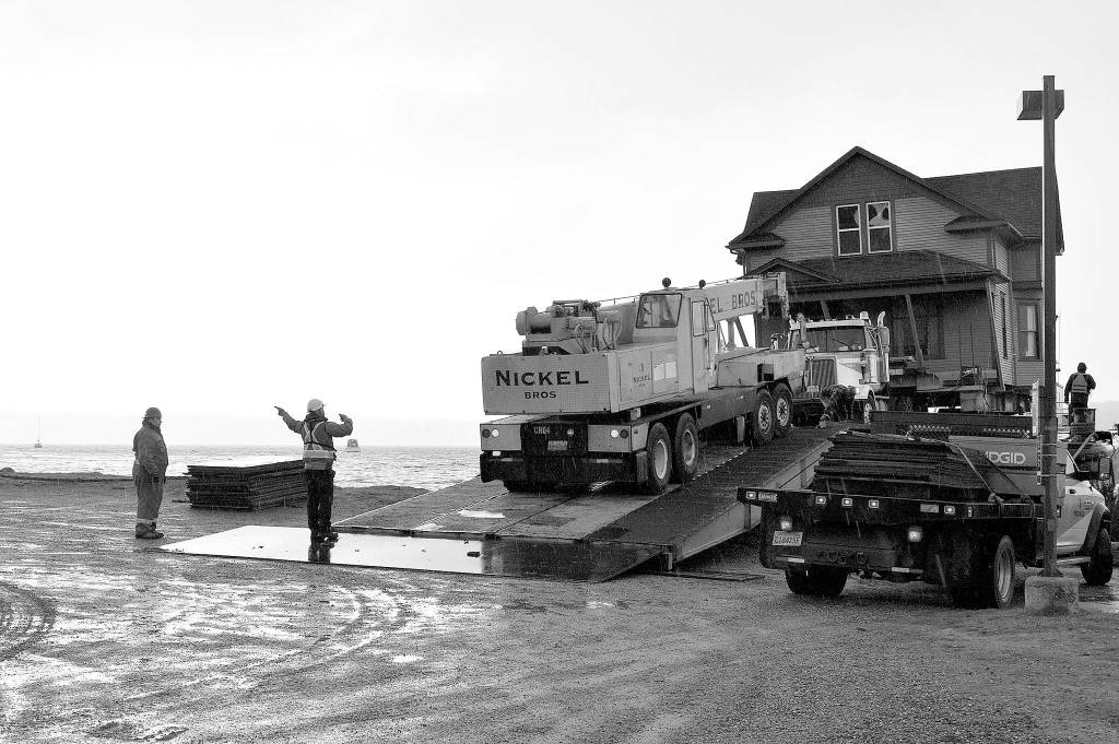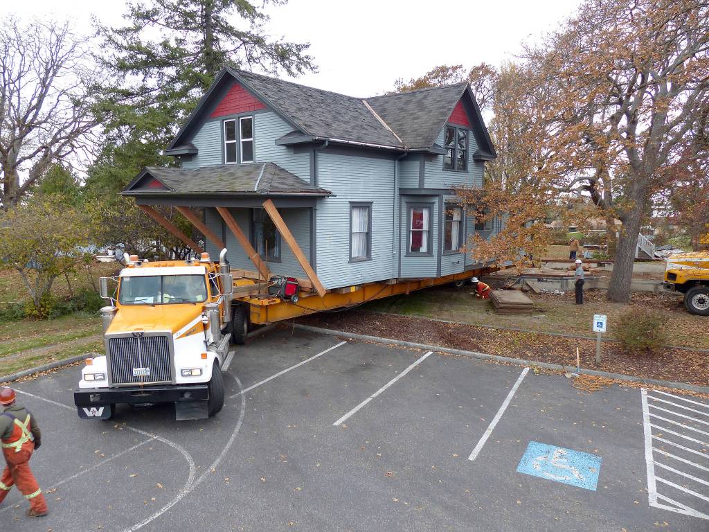 Nickel Bros., a well-known structure-moving company, picked up the two-story, circa-1879 Ely farmhouse and moved it through the city streets in the dark late Wednesday and early Thursday morning. The 60 tons of house was placed on a barge and transported to Coupeville, where it was off-loaded at high tide and moved to its new home on Northeast Lauren Street.