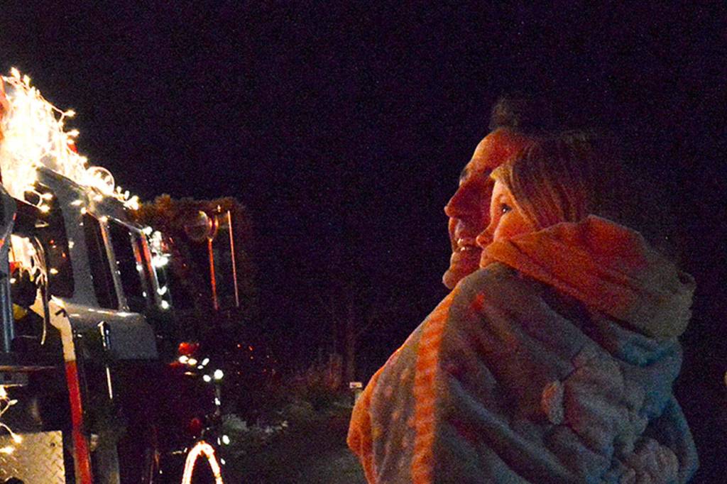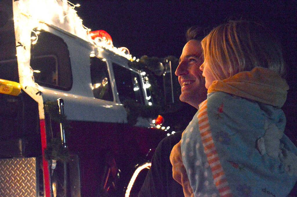 The faces of all ages light up as the engine, bright with Christmas lights, comes their way. The fire district started the tradition with the previous chief Joe Biller because he had done something similar in Bonney Lake.