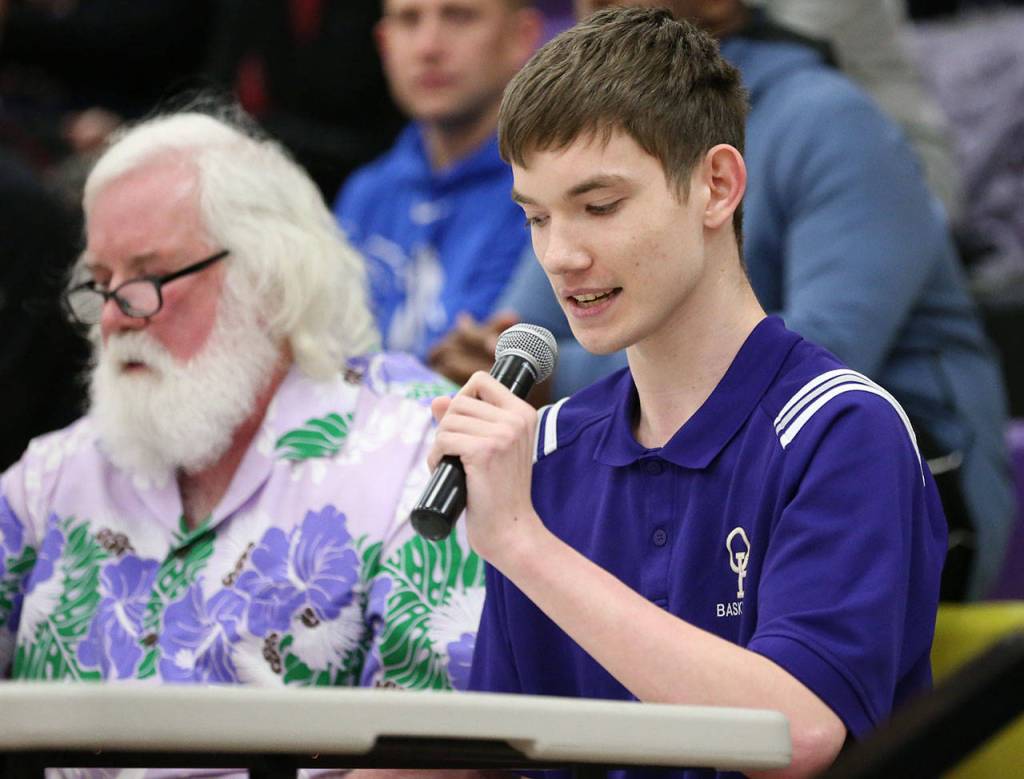Penney plans to attend Skagit Valley College next fall and then advance to Washington State University. He hopes to stay connected with basketball by becoming a sports broadcaster. To get a taste of performing behind the microphone, he worked with public address announcer Jay Long during Wednesday’s game with Marysville Getchell.