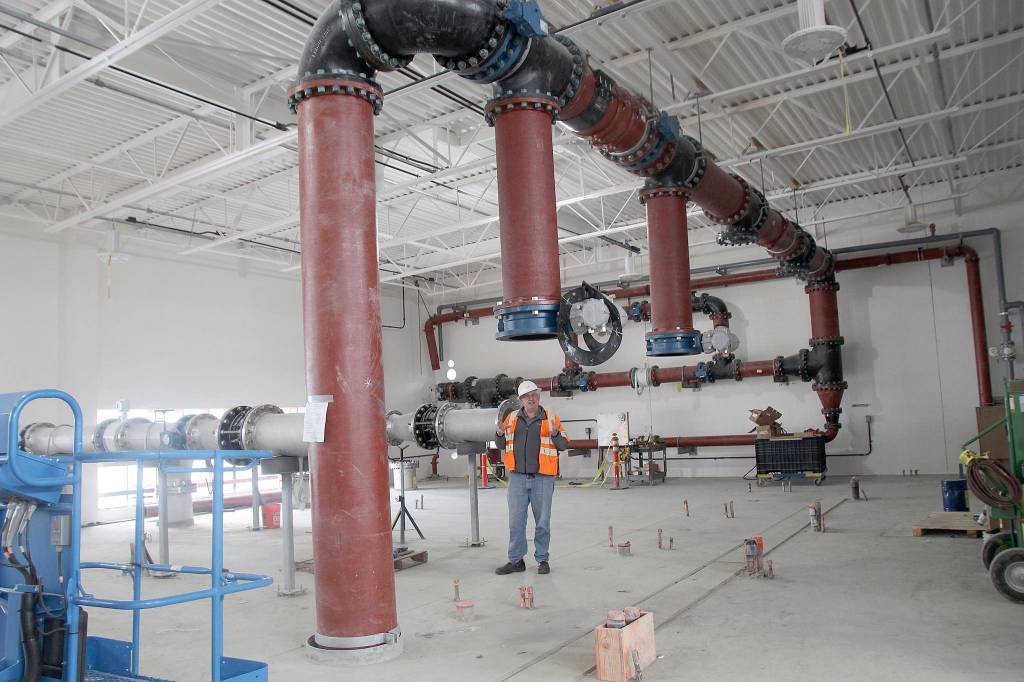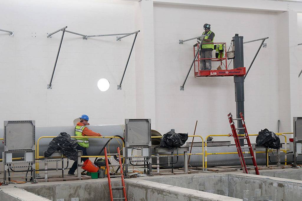 Estimated cost for Oak Harbor’s sewage treatment plant under construction in Windjammer Park recently jumped by $20 million.