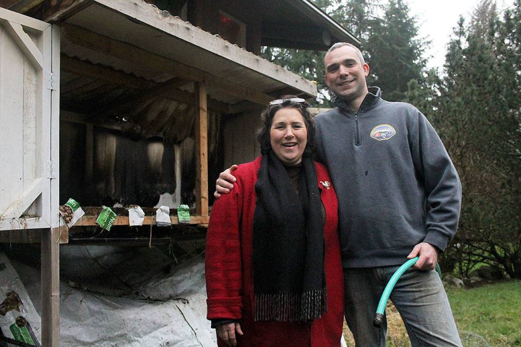 South Whidbey Fire/EMS volunteer firefighter Marc Swenson, a construction business owner by day, was heading into Freeland at about 6:45 p.m. on Feb. 6 when his pager went off. The alert from dispatch reported a chicken coop on fire near a house. It was a street he recognized, Pintail Road, because he lives nearby.