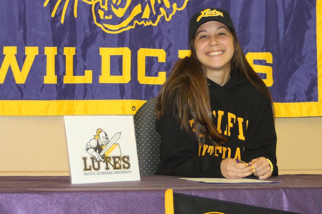 Jenna Cooley, a senior at Oak Harbor High School, signed a letter of intent Wednesday, March 14, to attend Pacific Lutheran University and compete for the Lutes’ women’s track team.