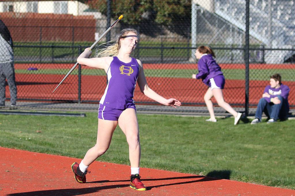 Picking up wins for the Oak Harbor girls were Amaya Rittierodt, 100, 13.49; Jenna Cooley, 400, 1:03.42; long jump, 15-01; Lydia Dorsey, javelin, 103-11; Kristina Tirado, high jump, 4-08; triple jump, 29-10.5; and Naomi Garcia, pole vault, 6-06.