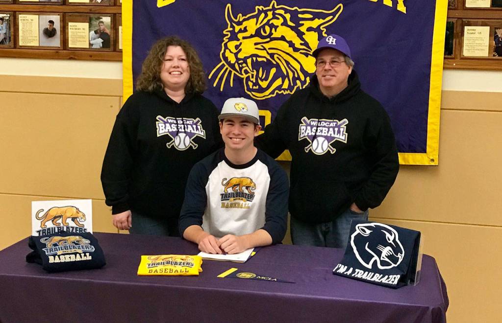 James Besaw, flanked by his parents Teresa and Jim at the letter signing Wednesday, will play baseball next year for MCLA. (Submitted photo)