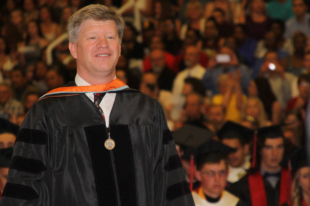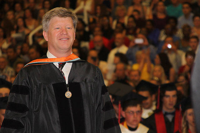 Fiule photo/Whidbey News-Times                                <em>Superintendent Jim Shank attends one of the handful of senior graduations he witnessed during his tenure with Coupeville Schools. Shank, who is leaving this summer, cites the 2017 total graduation rate as a great success during his time.</em>