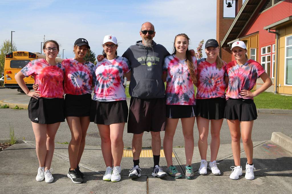 The Coupeville High School tennis team edged visiting Chimacum 4-3 Thursday, May 3, to win its fourth straight Olympic League 1A championship.