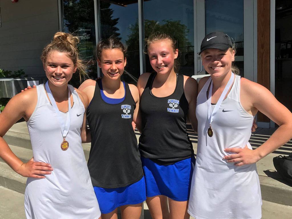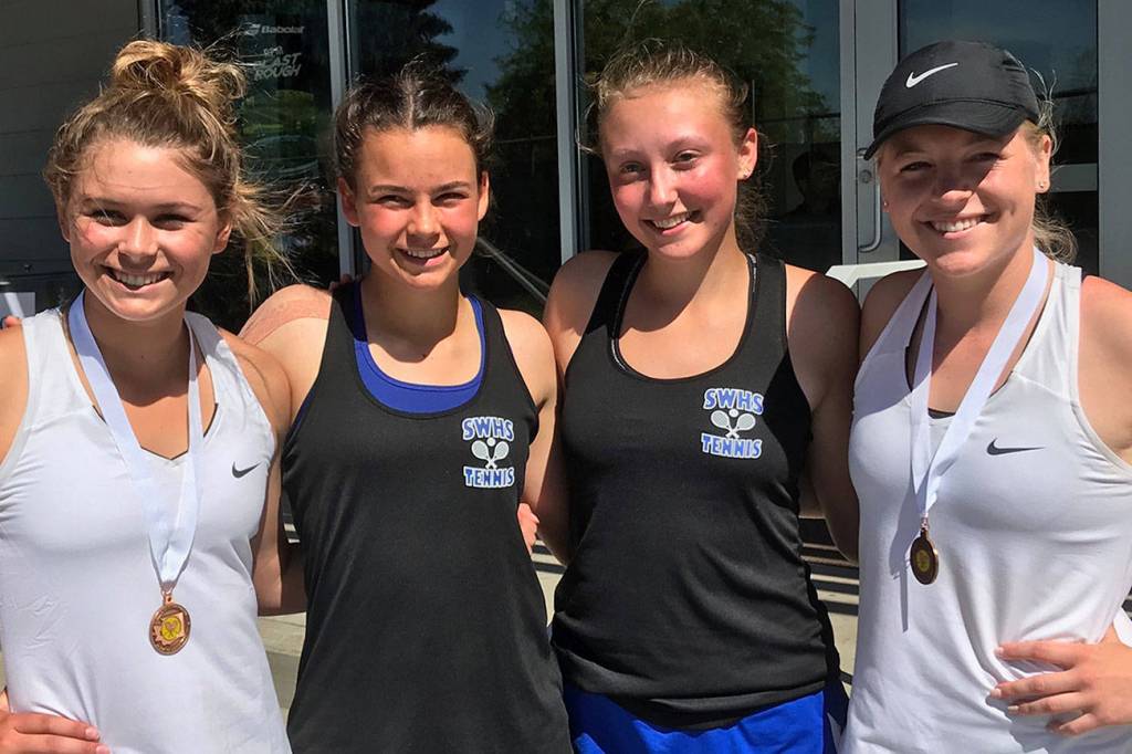 Coupeville High School seniors Sage Renninger and Payton Aparicio trimmed their fine high school tennis careers with a fancy bow, taking fourth place in the state 1B/2B/1A doubles tournament Friday and Saturday, May 25 and 26, at the Yakima Tennis Center.