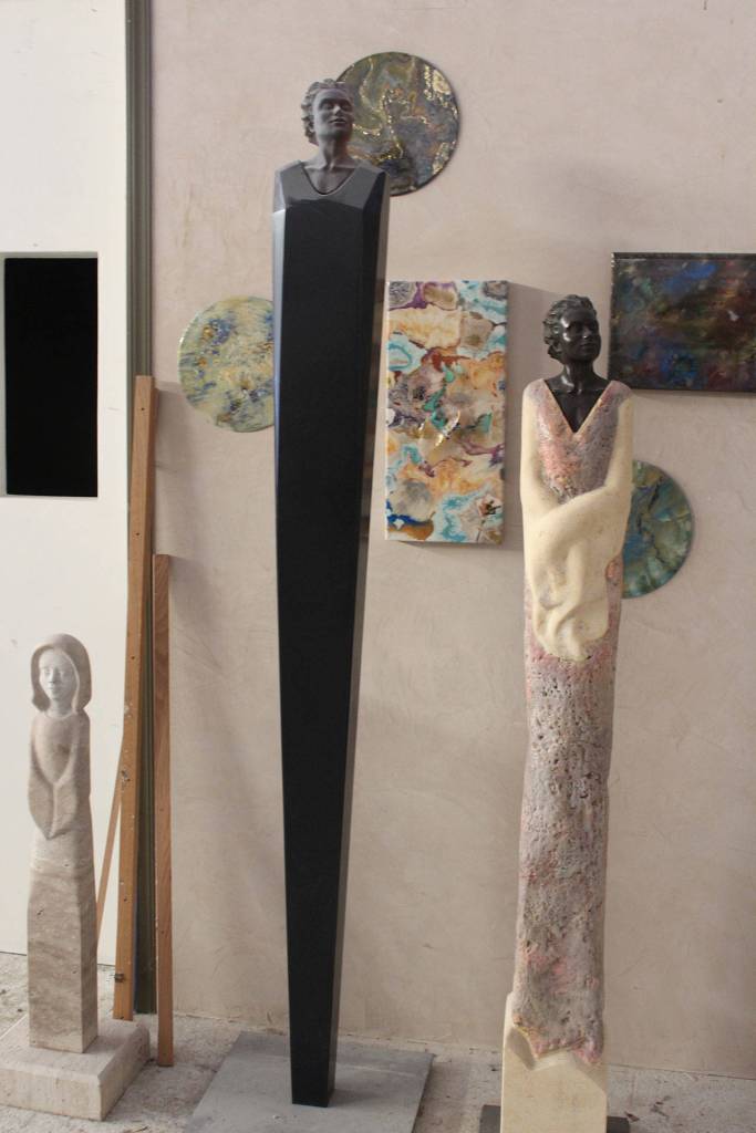 “What I like most about having a collaborative studio space is all the informal discussion about art and art making and the camaraderie,” said sculptor Sue Taves, whose work and tools keep expanding into bigger and bigger quarters. “Especially working in stone, having a second pair of trained hands around to help is so valuable.”