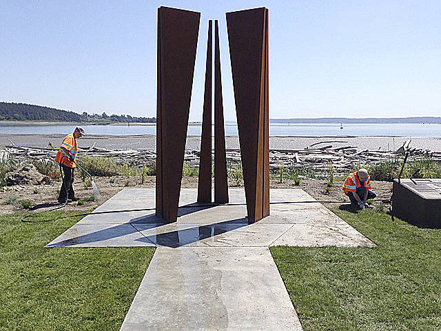 A striking sculpture now marks the beach site where Oak Harbor’s founding pioneers first intended to lay claim to the new territory.