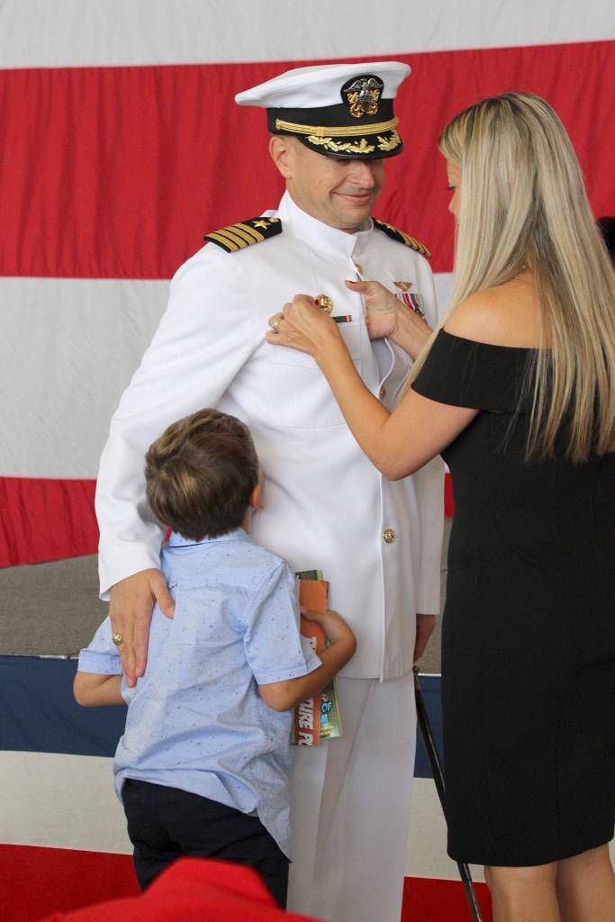 “There are three succinct phrases I have developed in my career and my life — serve proudly, choose to be happy and follow your core values,” he said. “I am humbled and excited to be here today assuming command of this great NAS Whidbey Island. And I’m proud to be a member of team Whidbey and our community… I am confident in our ability to succeed and in my ability to proudly serve you in this role.”