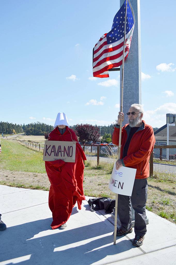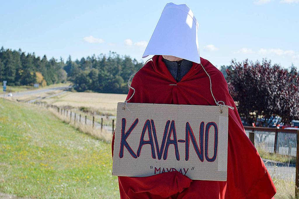 About 11 people held signs at intersection of State Highway 20 and Main Street in Coupeville, both in protest of Kavanaugh’s nomination and support for women who have accused him.