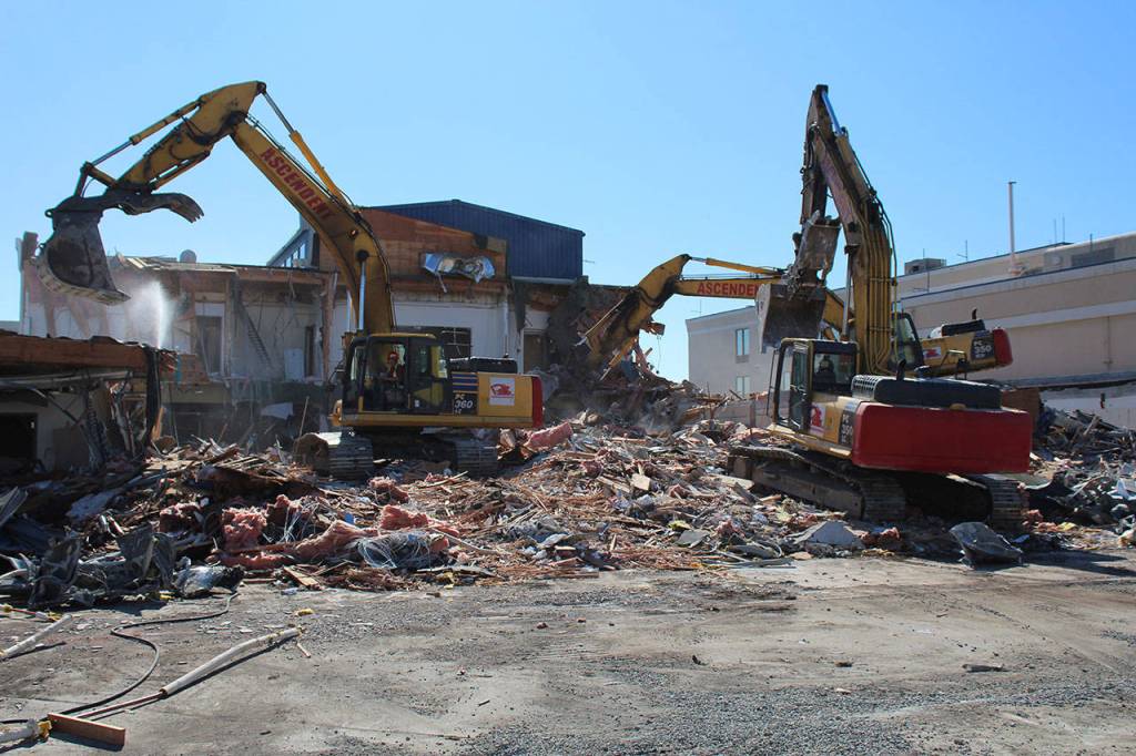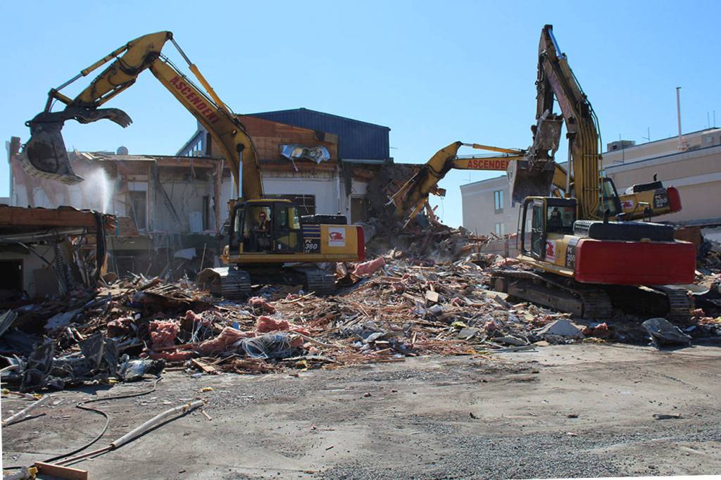 Big machines, but no wrecking ball or dynamite, are being used to reduce the former Whidbey Island Bank on Pioneer Way in Oak Harbor to rubble.