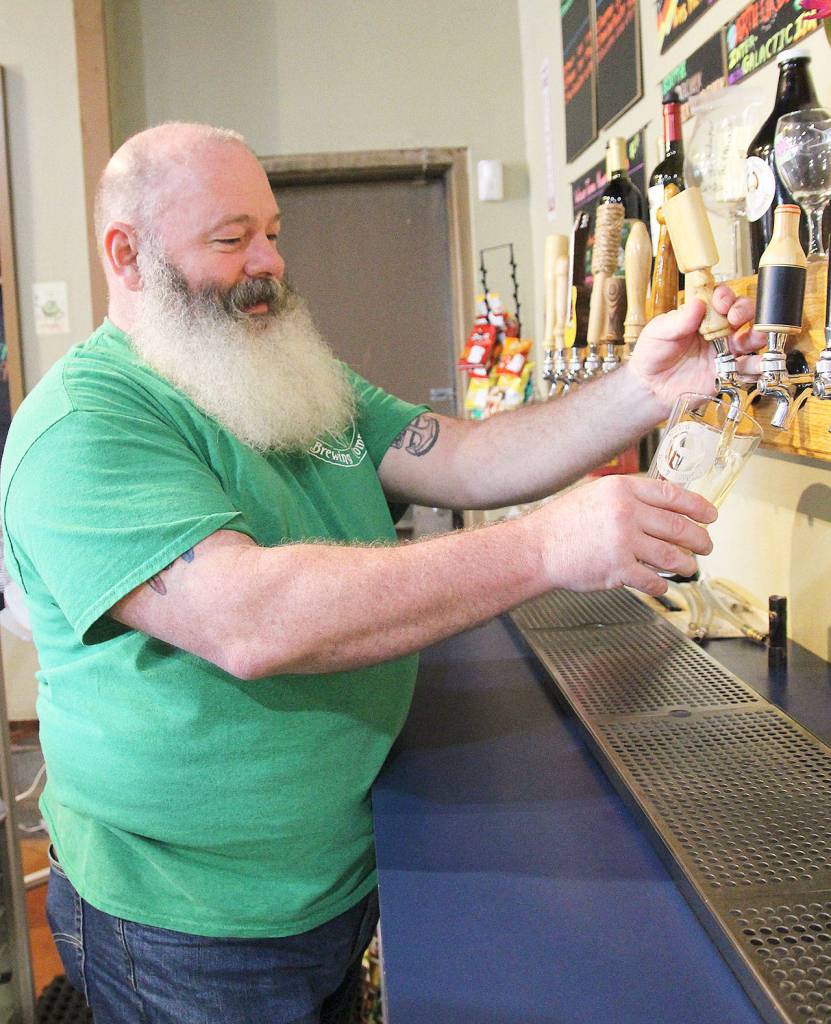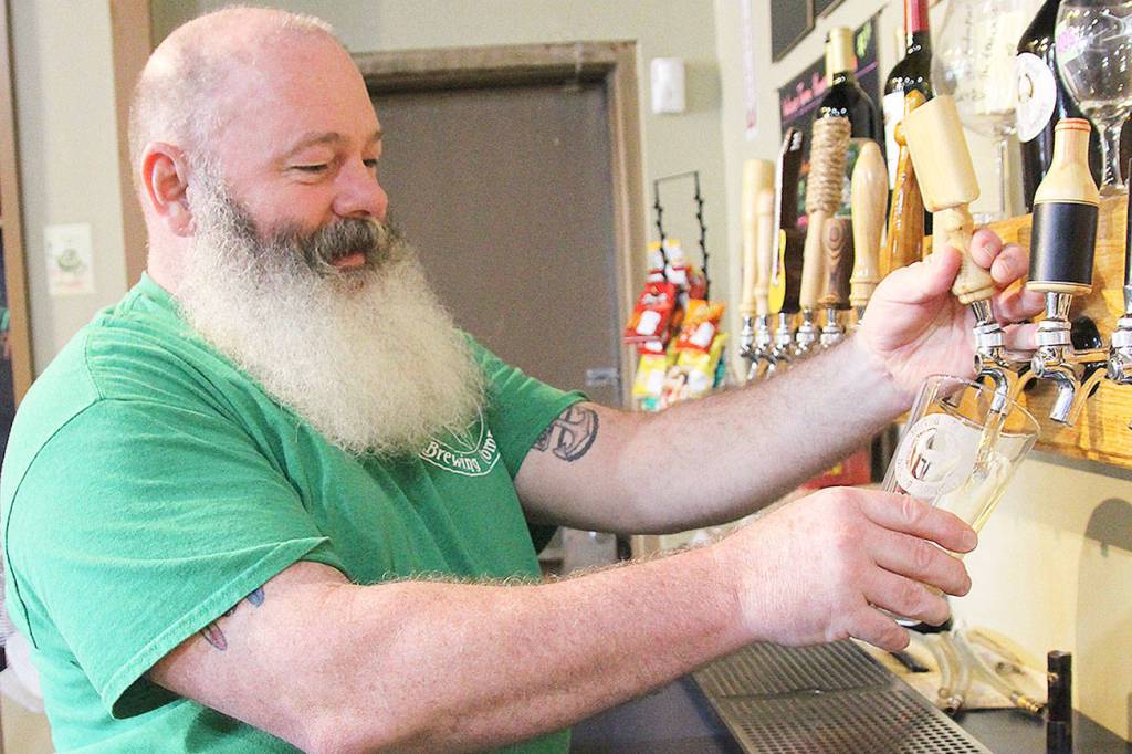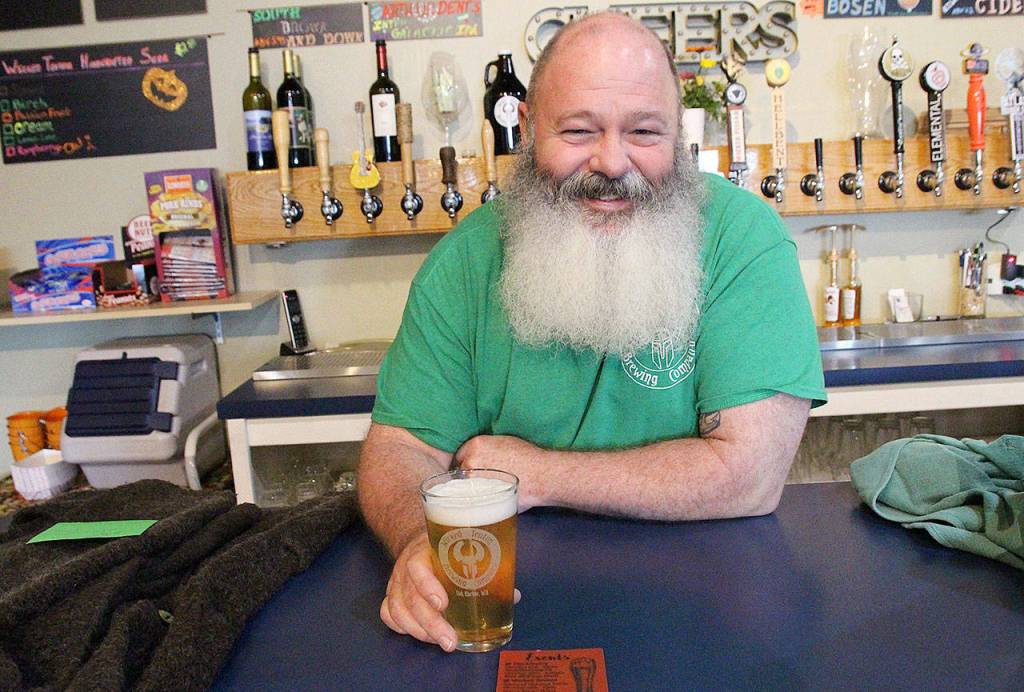 Terry Boese, owner of Wicked Teuton Brewing Company, says he wishes his beard was longer so he could dress up as a wizard for a Harry Potter trivia night happening later this month. The brewer and the library are teaming up to offer two Booktoberfest trivia events, starting Thursday. Photo by Laura Guido/Whidbey News-Times