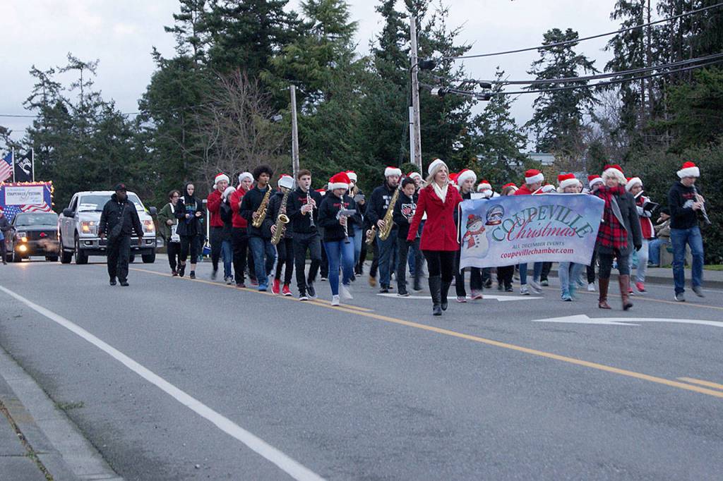 The parade started at First Street and continued down Main to Front Street. The combined forces of Coupeville Middle and High Schools led the parade with loud, festive music.