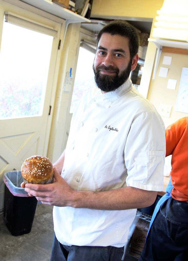 Patrick Goldacker, head baker at the Oystercatcher in Coupeville, has spent months perfecting the restaurant’s holiday panettone.