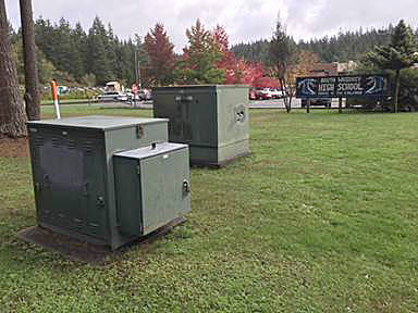 Puget Sound Energy’s transformer box at South Whidbey High School has an artsy new look.
