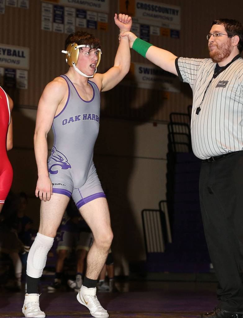 Caleb Fitzgerald (132 pounds) won 13-4 and Cole Valdez (106) and Timothy Powers (113) each won by forfeit to score Oak Harbor’s other points.