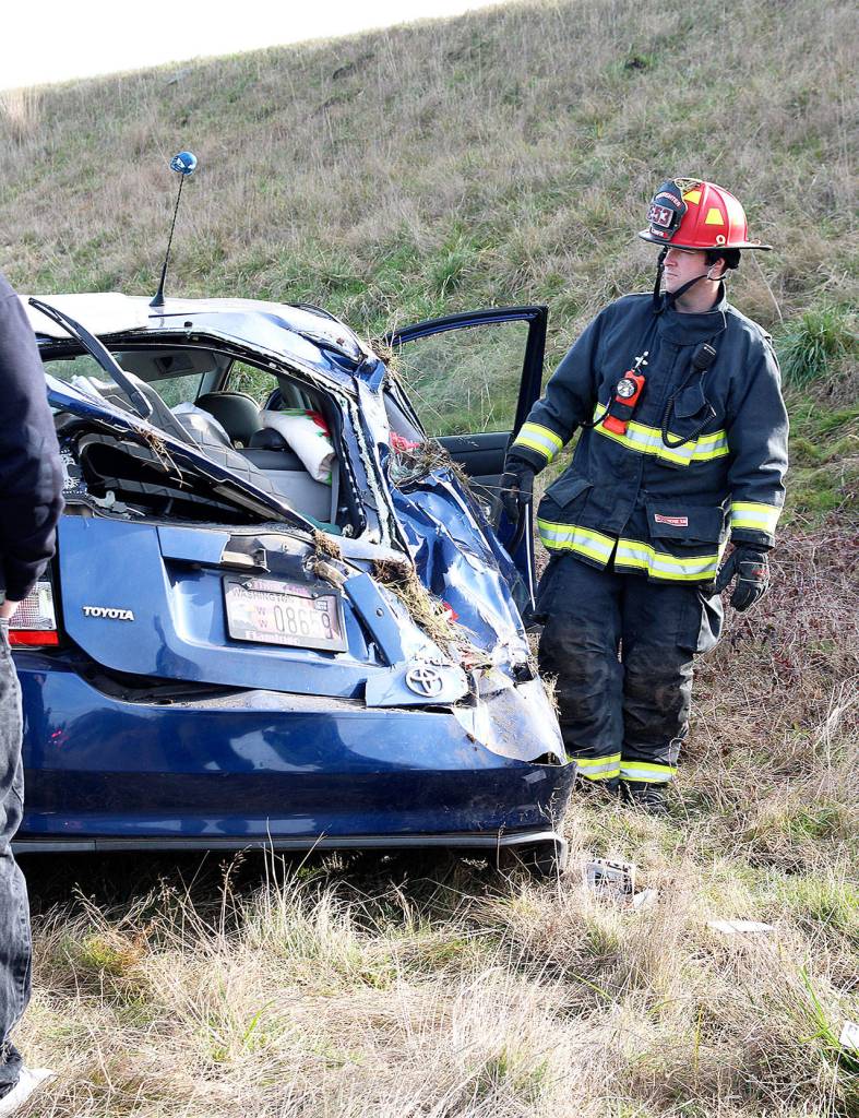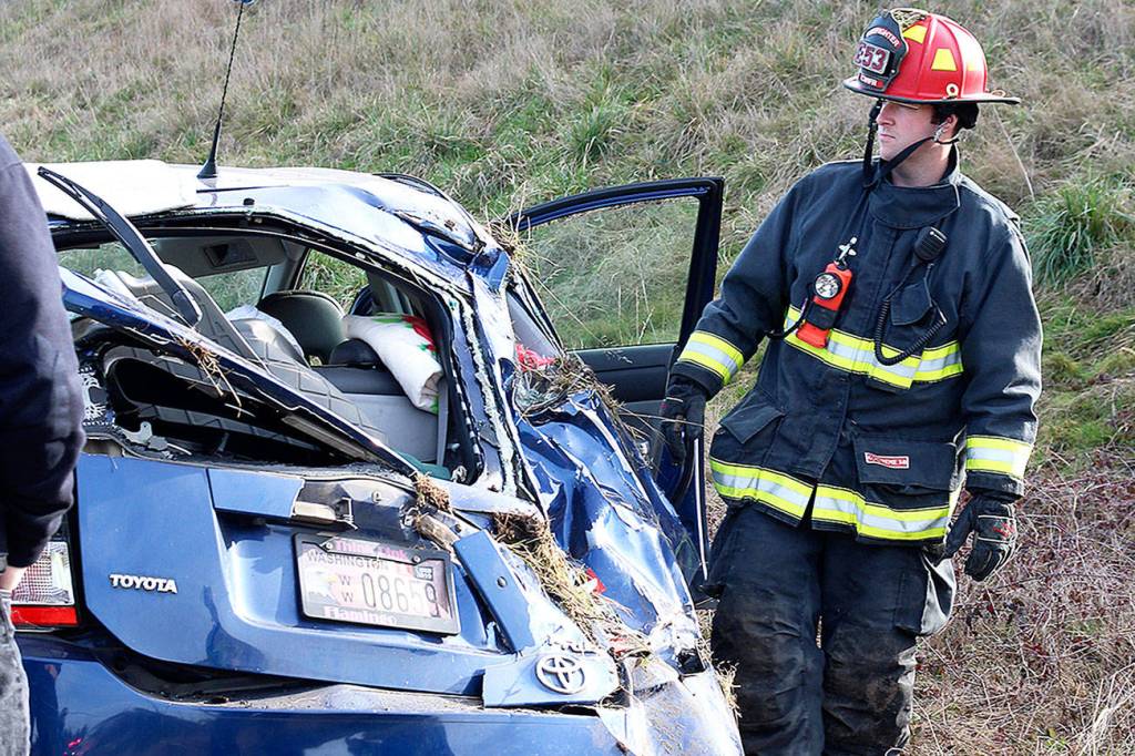 A man was transported to WhidbeyHealth Medical Center after a rollover accident Monday afternoon off Highway 20 near Sherman Road. The man was dazed, but his injuries were likely minor, according to Central Whidbey Island Fire and Rescue Chief Ed Hartin.