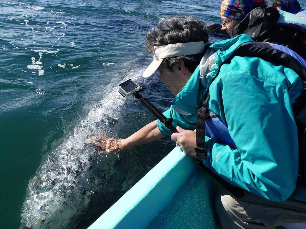 “Seeing their trust as the mothers surface near the pangas with their calves is humbling, allowing — almost inviting — us to touch their mottled rubbery skin,” Pollard said.