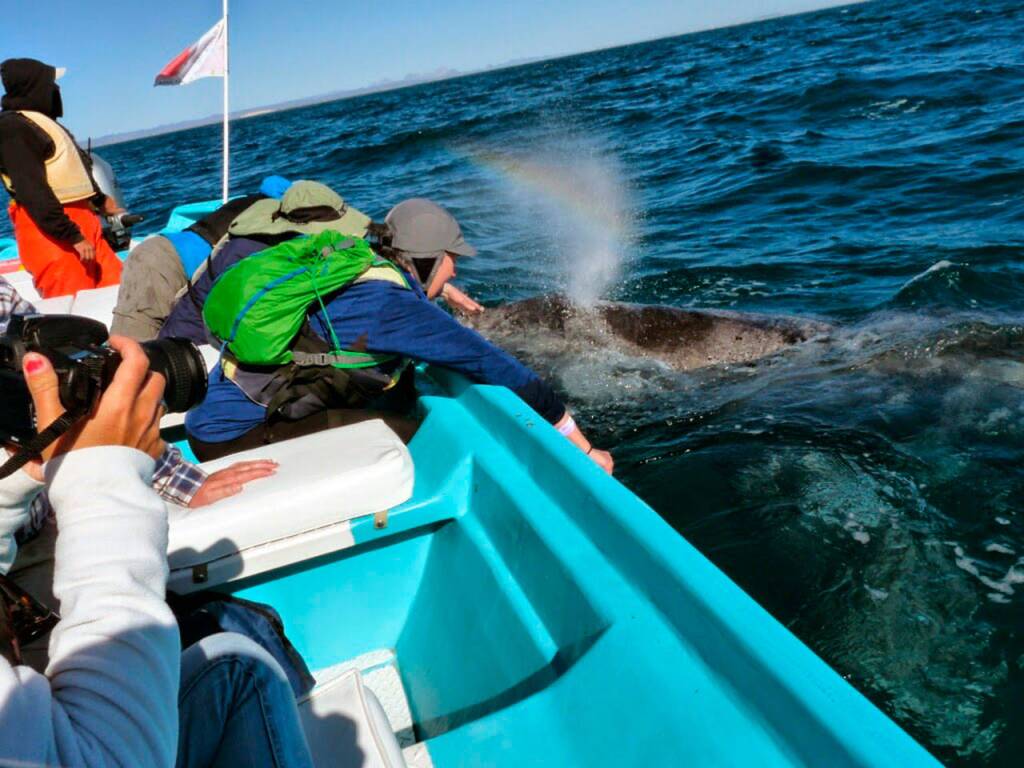 The whales nuzzle the small boats, called pangas, and don’t retreat when a human reaches out to pat their head or decides to serenade them with a tune or two. The whales also engage in more expected ways, such as spyhopping, breaching and mating.