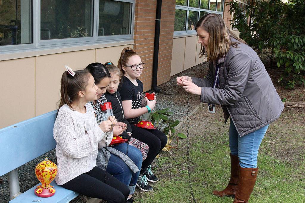 The hummingbird feeders were given to the club by the school’s principal Kate Valenzuela and para educator Tina Morris.