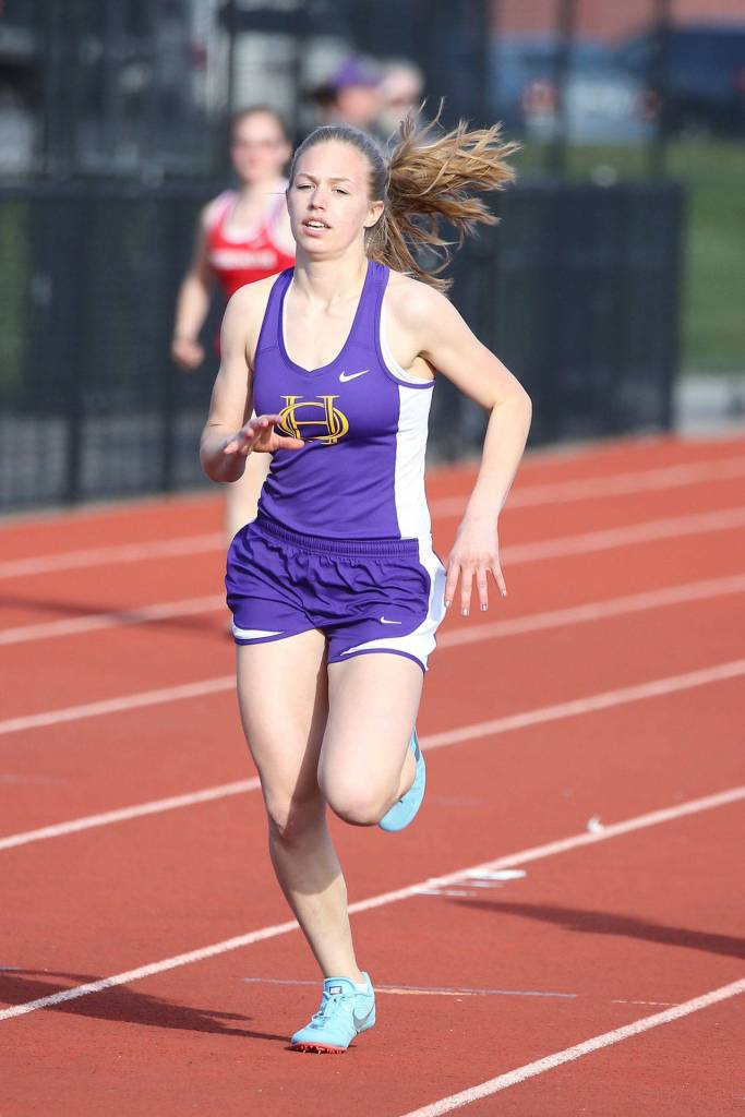 The Oak Harbor High School girls track team split a double dual meet while the boys dropped both ends Thursday, March 28, at Wildcat Memorial Stadium.