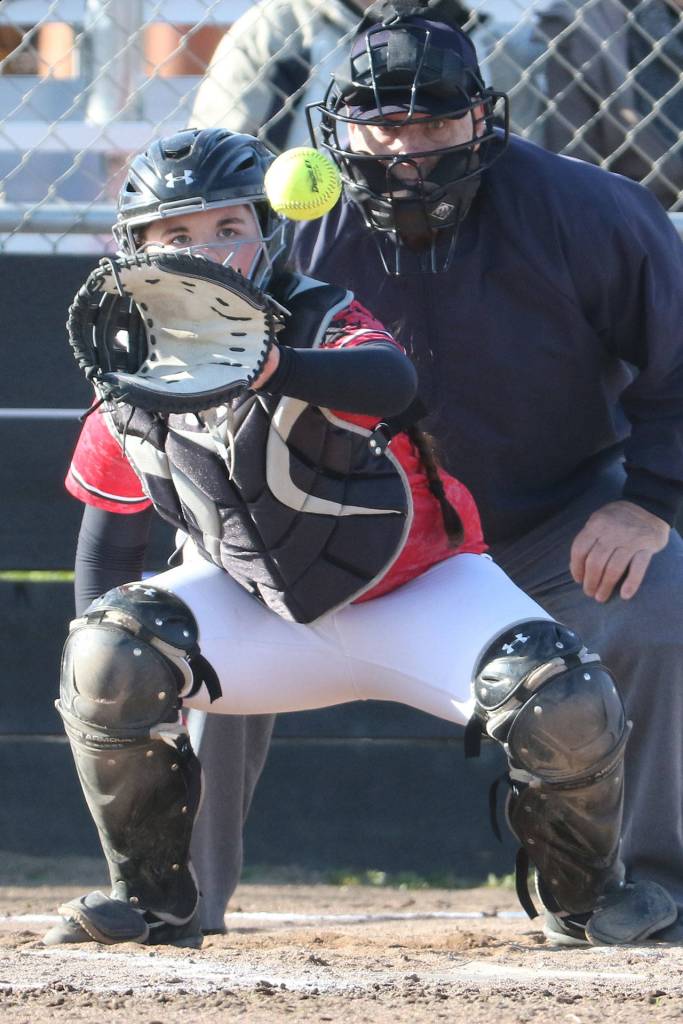 Catcher Sarah Wright receives a pitch Tuesday.(Photo by John Fisken)