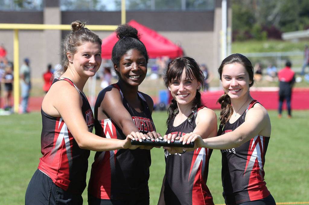 The Wolves 4x10 team of Maya Toomey-Stout, Ja’Tarya Hoskins, Mallory Kortuem and Lindsey Roberts qualied for the state meet. (Photo by John Fisken)