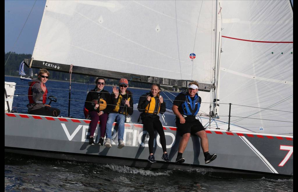 Vertigo, skippered by high schooler Thomas Buys and crewed by a group of Oak Harbor High School students from the Wildcat sailing club, only competed May 30 but picked up a second and third.