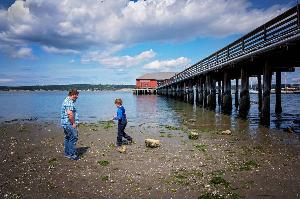 Beachcombers search for crabs under rocks at the Coupeville Wharf, which is slated to undergo restorations. Photo courtesy of Pamela Davis Headridge
