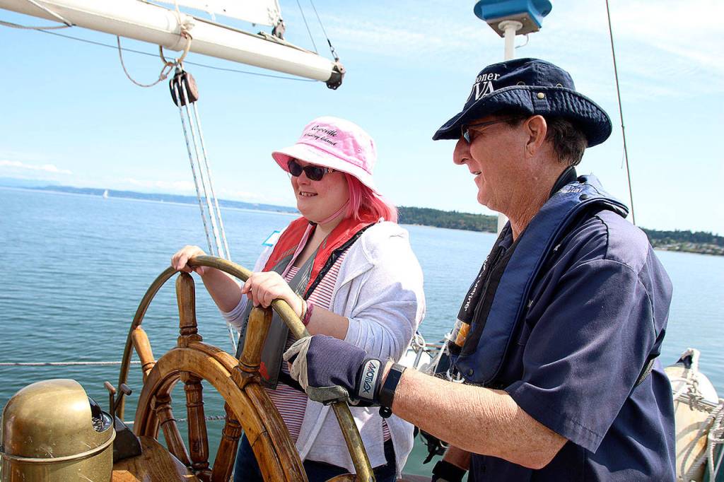 The timing worked well for Sue Andrews, who was looking for a fun activity for members of her nonprofit group. SUVA Capt. Gary “Captain Mac” McIntyre led two groups of adults with developmental disabilities and their parents or sponsor on short sailing excursions into Penn Cove.