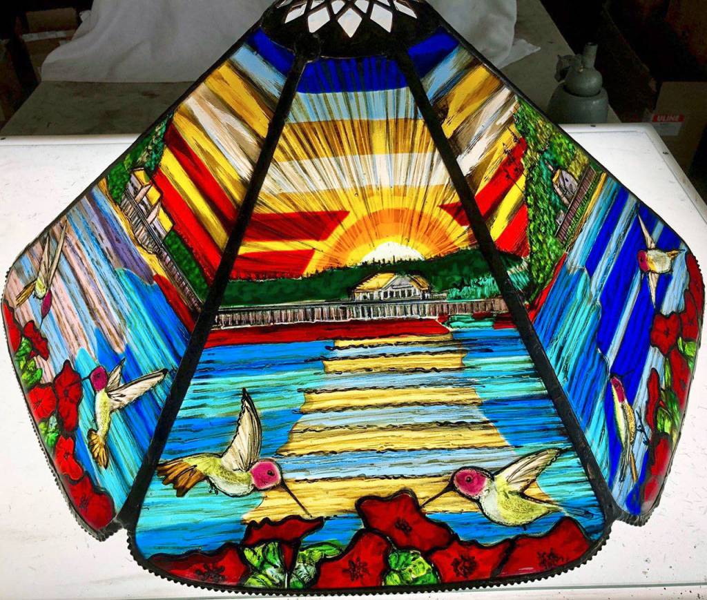 Coupeville resident and fused glass artist Janine Onffroy Shelley will be showing her glass lampshades and lamps at the festival. Shelley said she loves the Coupeville show because it demonstrates “the high quality and variety of art we have on this island.” (Photo provided)