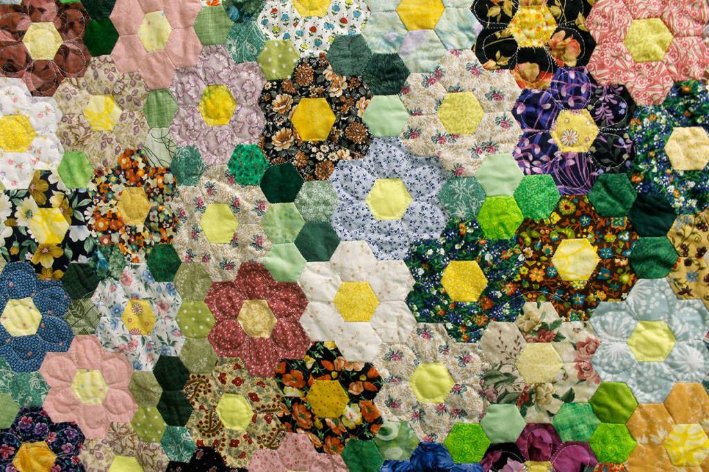 The star of the free event is a large quilt with over a thousand colorful hexagons sewn together in a “Grandmother’s Flower Garden” pattern. The quilt will be given to the winner of a raffle, with tickets for $1 and serving as a fundraiser for the senior center.
