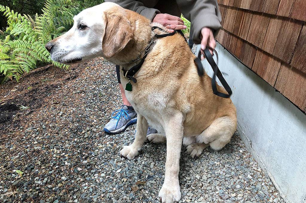 Gus the Labrador got some help from Central Whidbey Island Fire and Rescue Saturday afternoon after getting stuck on a steep bluff. Photo provided