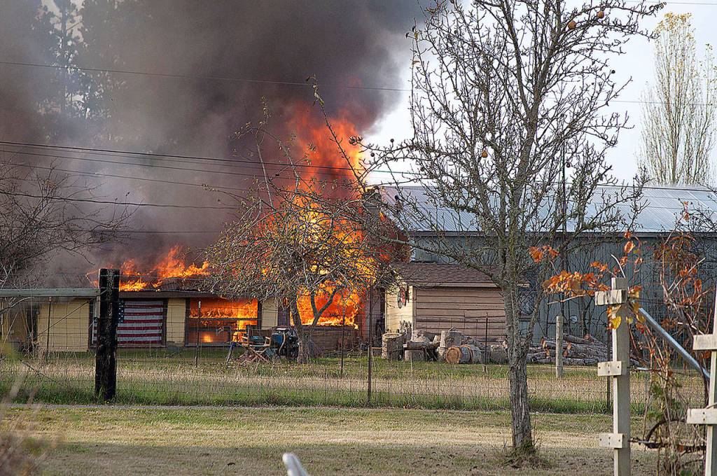 The 2,000-square-foot, single-story home was fully engulfed in flames by the time crews arrived, according to North Whidbey Fire Chief Chris Swiger.