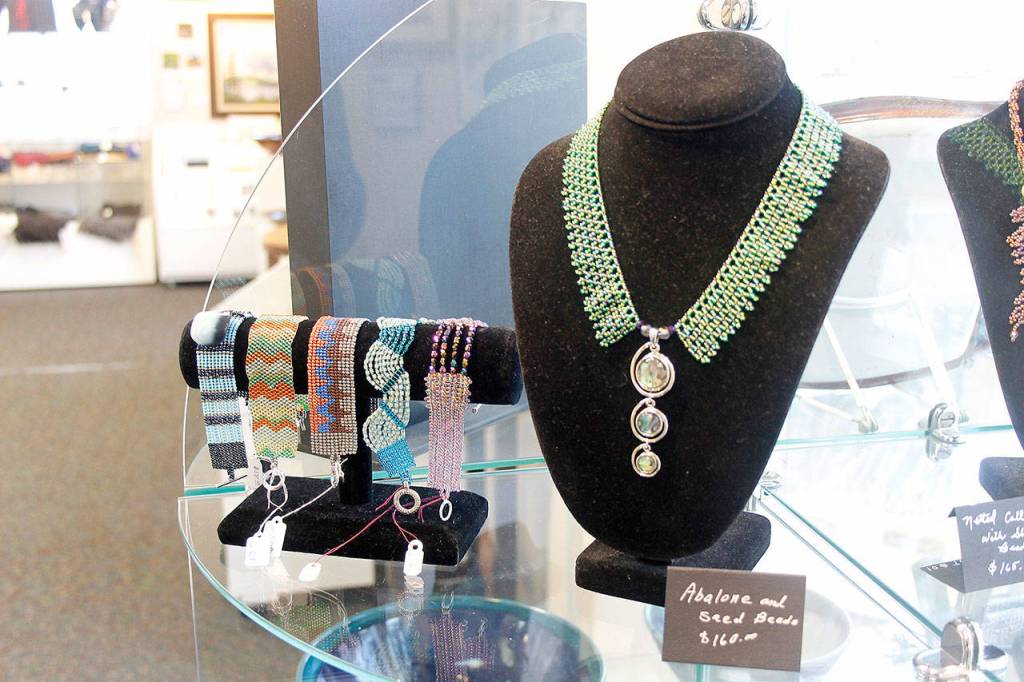 Joined this past summer, newcomer Shari Thompson brings intricate bead work to the gallery’s display. She has enjoyed the other artists for being so inspiring. The people she has met in the Whidbey Island art community told her about joining the gallery.