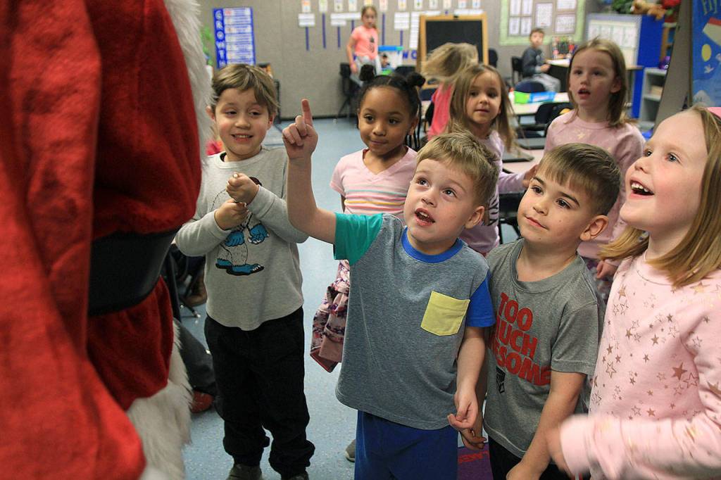 Her classmate Isaac Hamm, however, was happy to see the man in the red suit. He was impressed to that Saint Nicholas had time in his busy schedule to visit his Oak Harbor classroom.