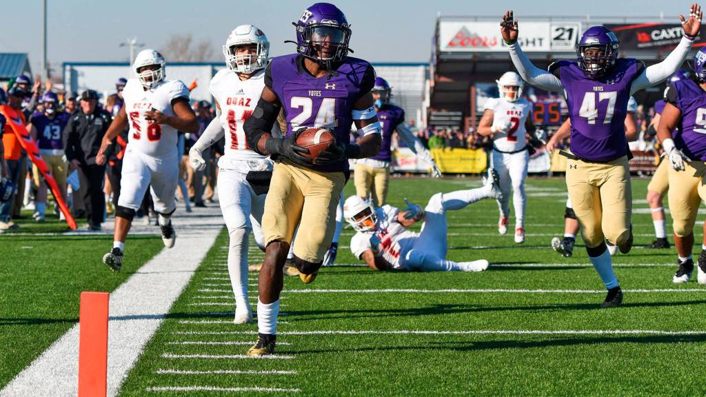 Sophomore Taeson recorded a 47-yard pick-6 in a 70-23 win over Ottawa University (Arizona) in the first round of the playoffs Nov. 23. Freshman Dorian also had an interception in the game.