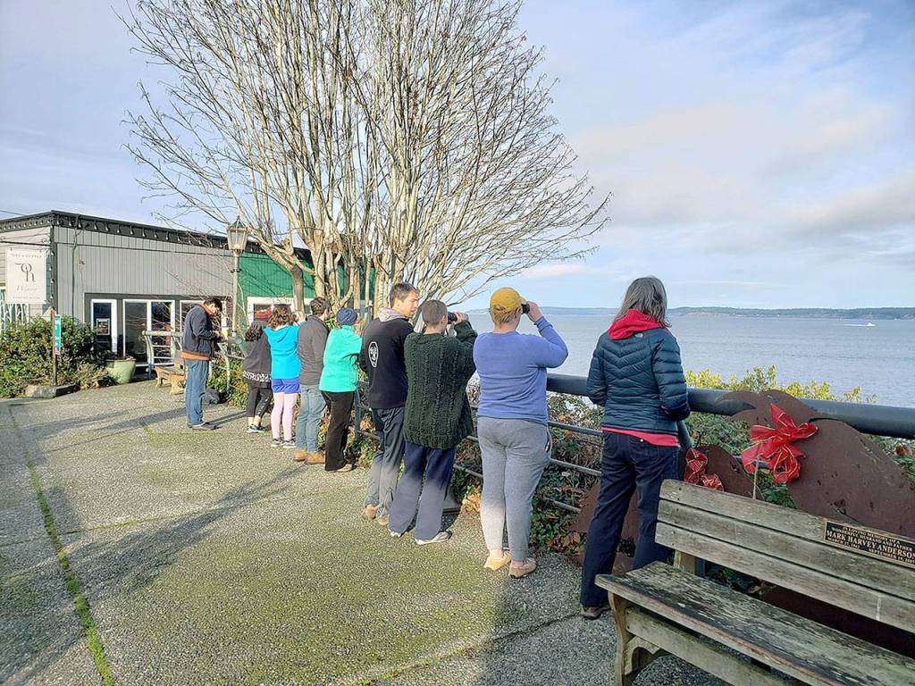 The whale bell sounded the morning of Dec. 24 in Langley. Citizens and visitors alike flocked to Boy and Dog Park and other viewing points to catch sight of the whales swimming north, moving through Possession Sound in the morning and up Saratoga Passage the remainder of the day. Sometime that night, they turned around and headed back south.
