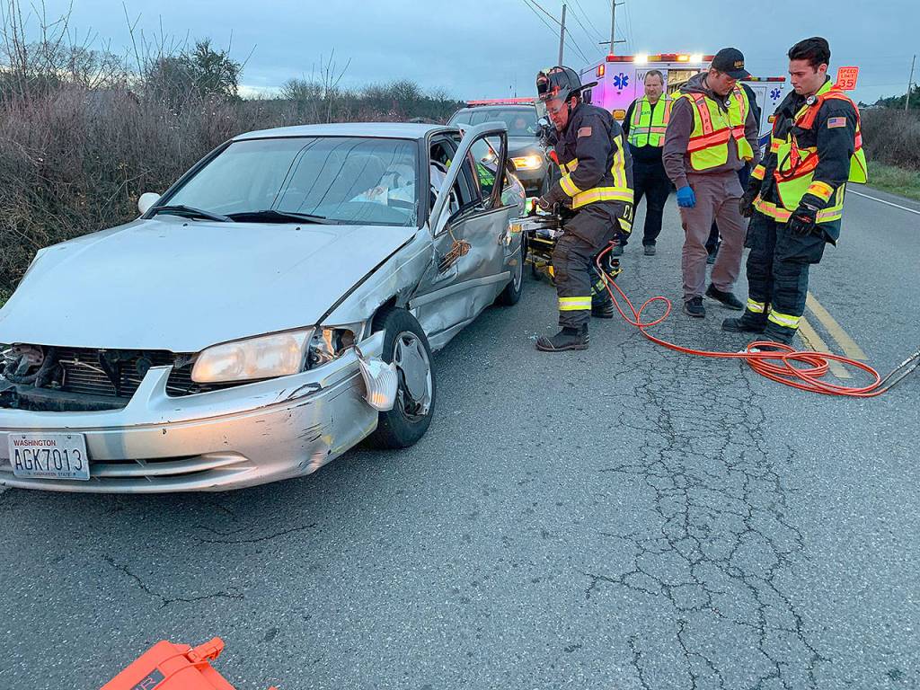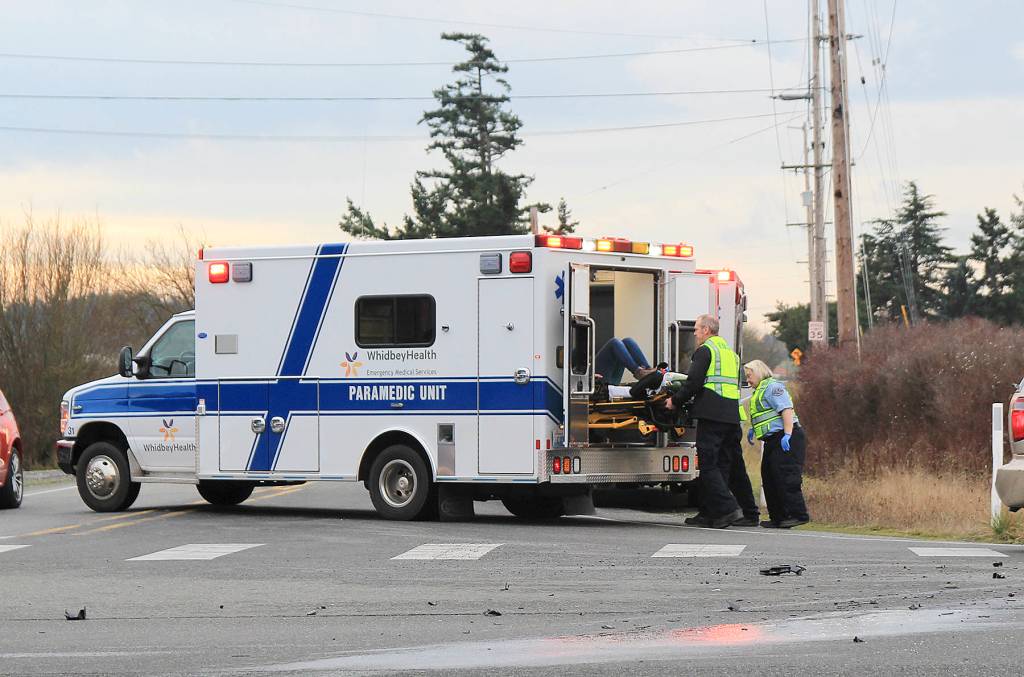The three-vehicle collision was reported on Highway 20 near Northwest Broadway at 3:20 p.m., according to Fire Chief Ed Hartin of Central Whidbey Island Fire and Rescue.