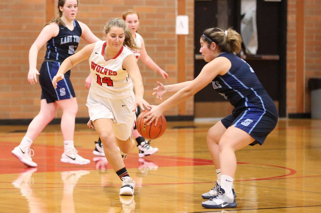 Coupeville’s Chelsea Prescott hit the second of two free throws, then Avalon Renninger and Smith each connected on a pair and the Wolves took the lead for good, 28-25.