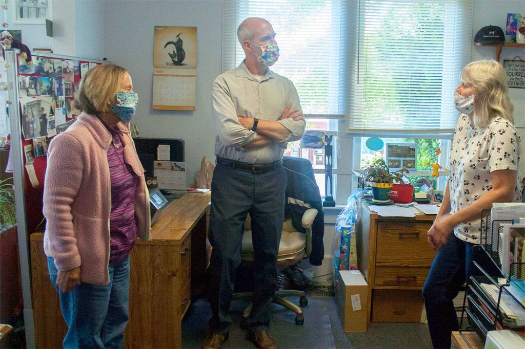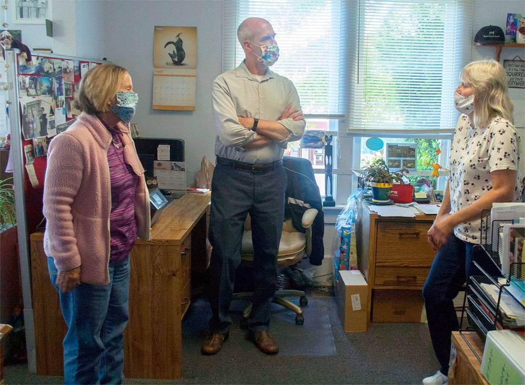 Even though the Help House sent home its volunteers in April and staff members are working shorter hours, the food bank is settling in to the social-distancing, mask-wearing atmosphere. Yet Wieman explained to the congressman that the nonprofit has seen a reduction in the number of people using its services.