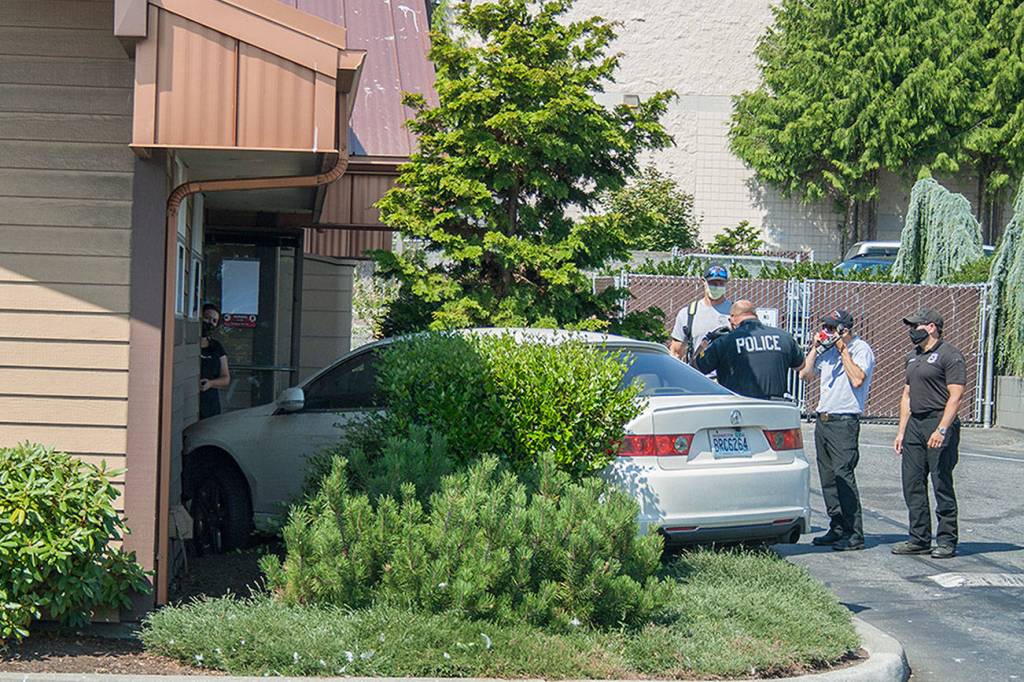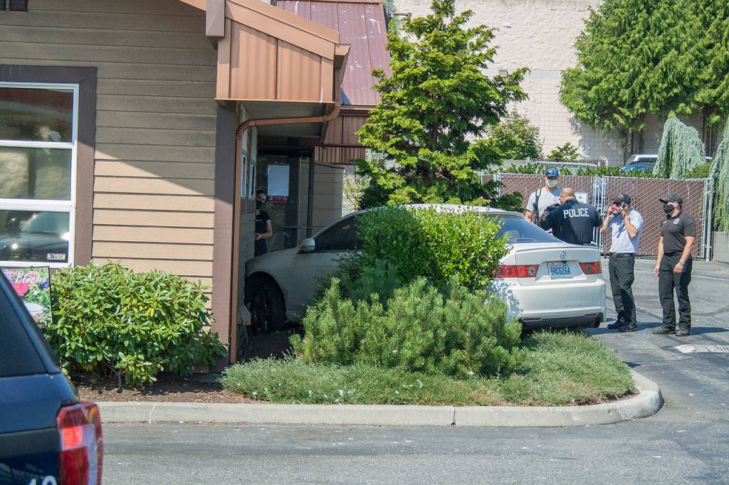 At 11 a.m. Thursday, a cream-colored Acura sedan careened up a curb and crashed into Whidbey Coffee in Oak Harbor, near the intersection of Southwest Barlow Street and State Highway 20.