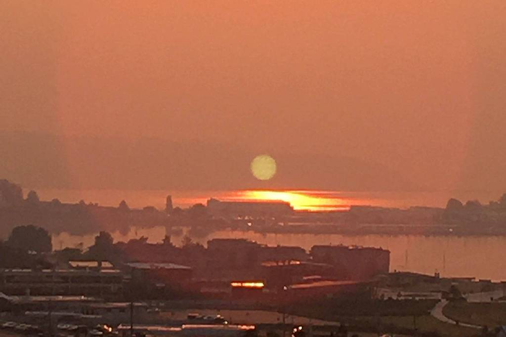 A haze caused by wildfire smoke hangs over Oak Harbor earlier this week. Photo by Jim Waller/Whidbey News-Times.