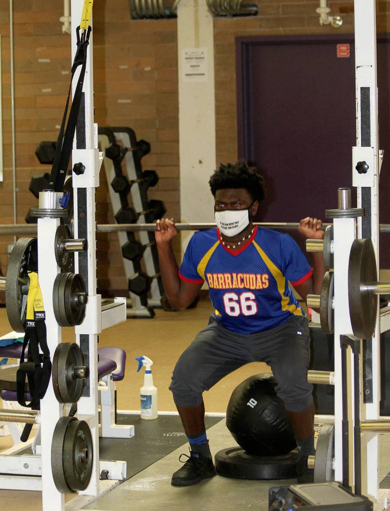 The team currently works out three days a week and averages about 60 athletes per day through its social-distanced groups. Last year, only 10 athletes consistently showed up, according to senior Nate Hummel.